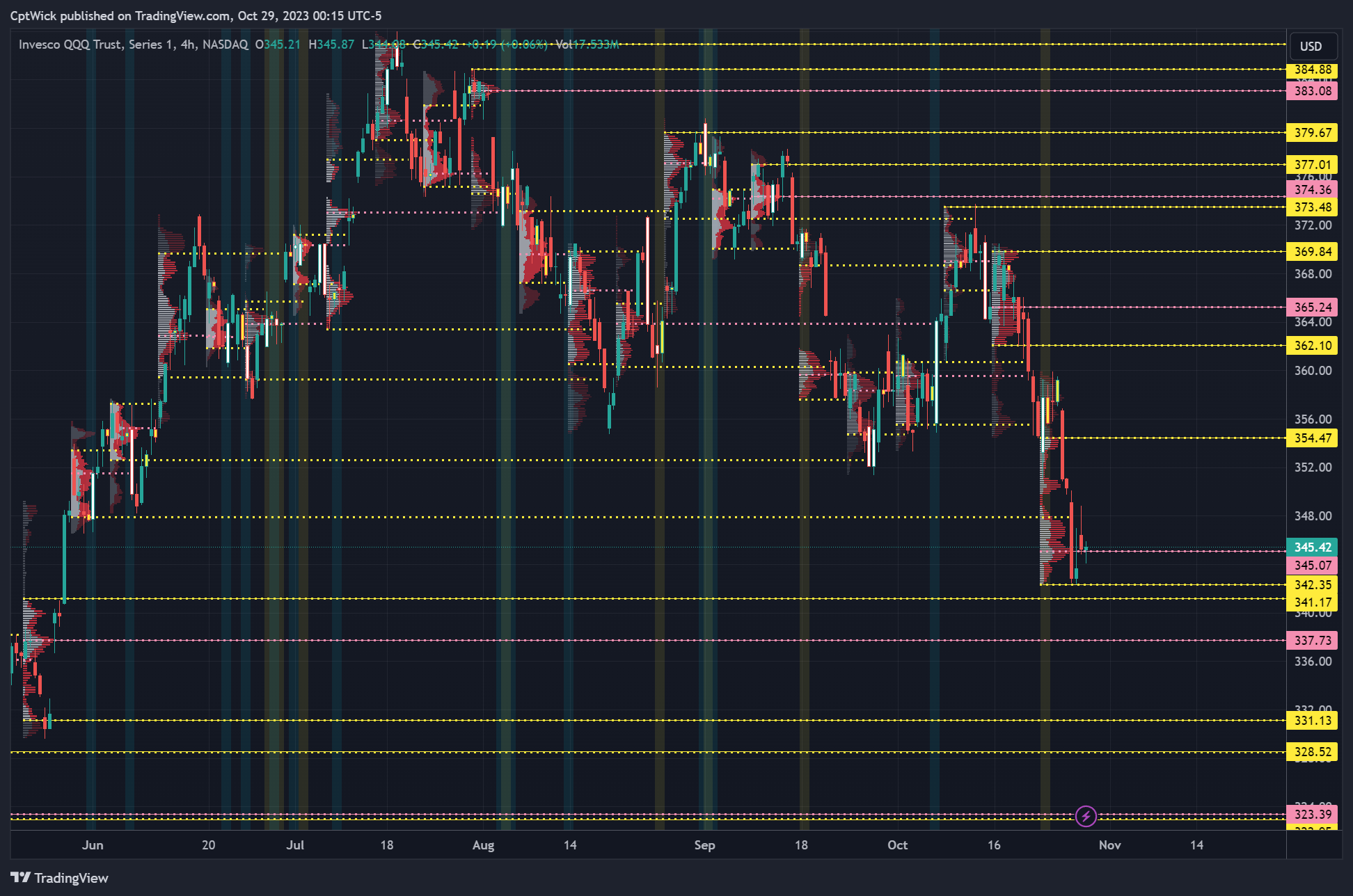 Bulls need to maintain above 345.07 at a chance to test 354.47. Under 341.17 I would expect to see 337.73 and May’s VAH 336.08. Under this we can go to 331.13-328.52.