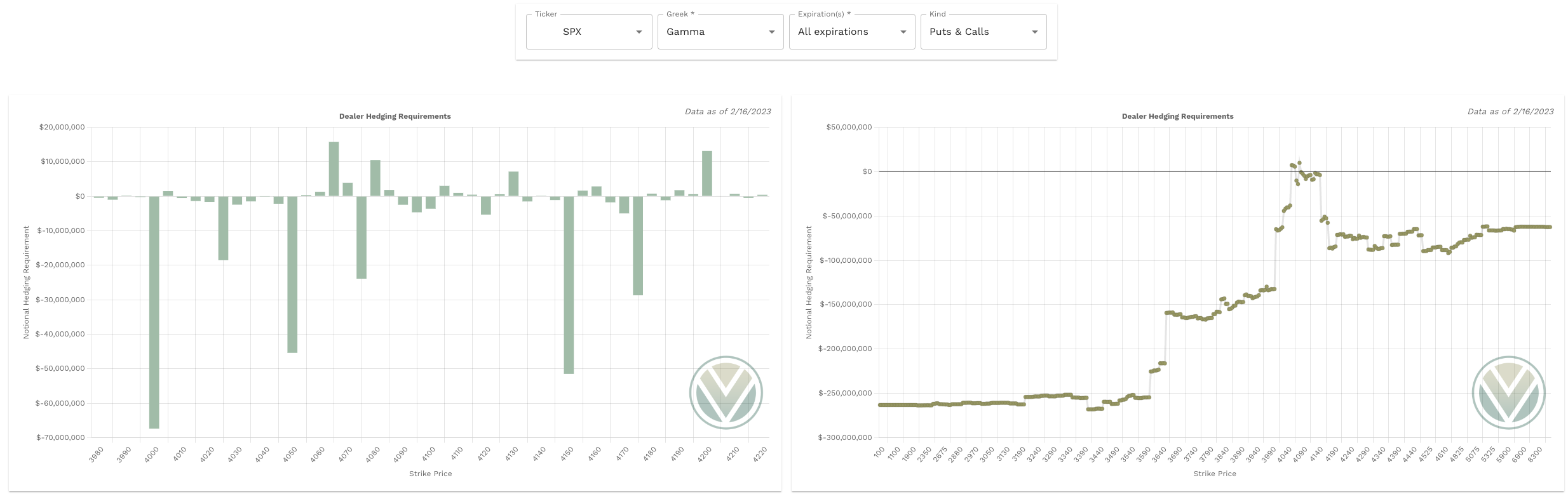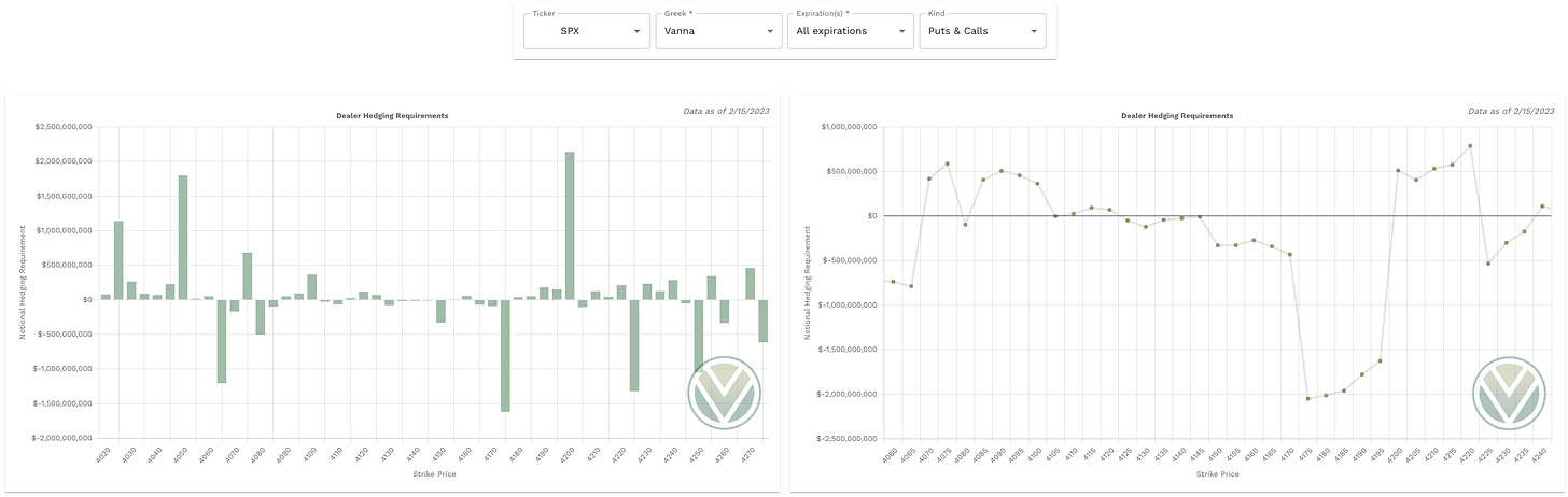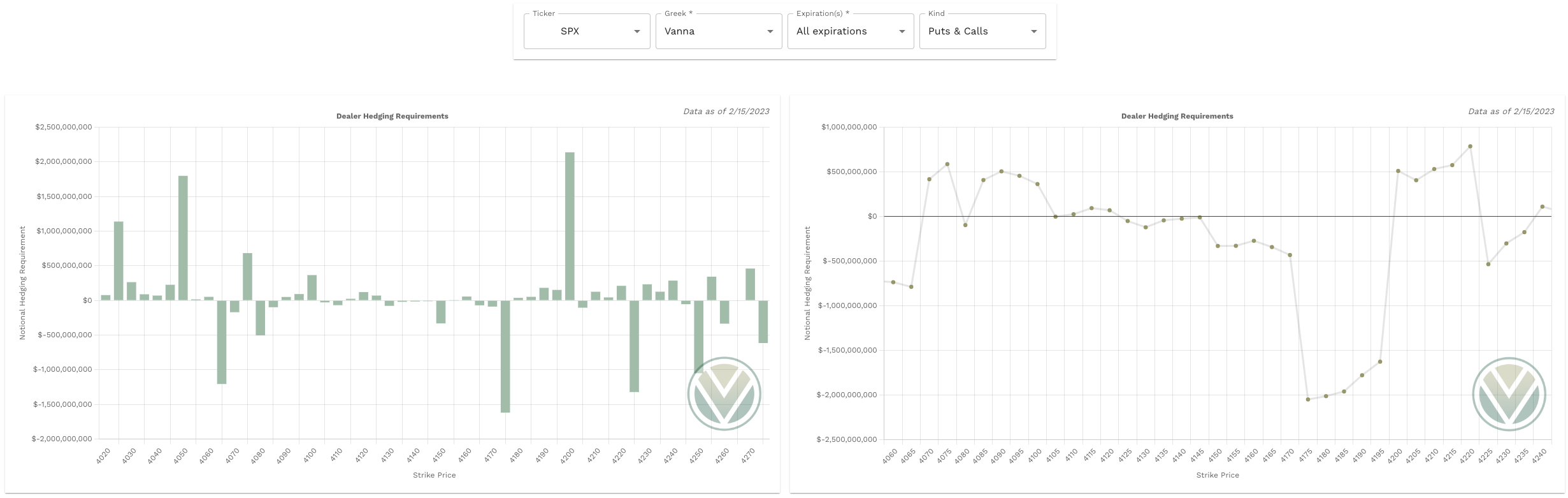 For a better understanding of the various greeks below I would suggest you visit the Volland YouTube Page. Volland provides unique data showing where dealers are positioned providing in my opinion a higher degree of conviction to where price may move to.