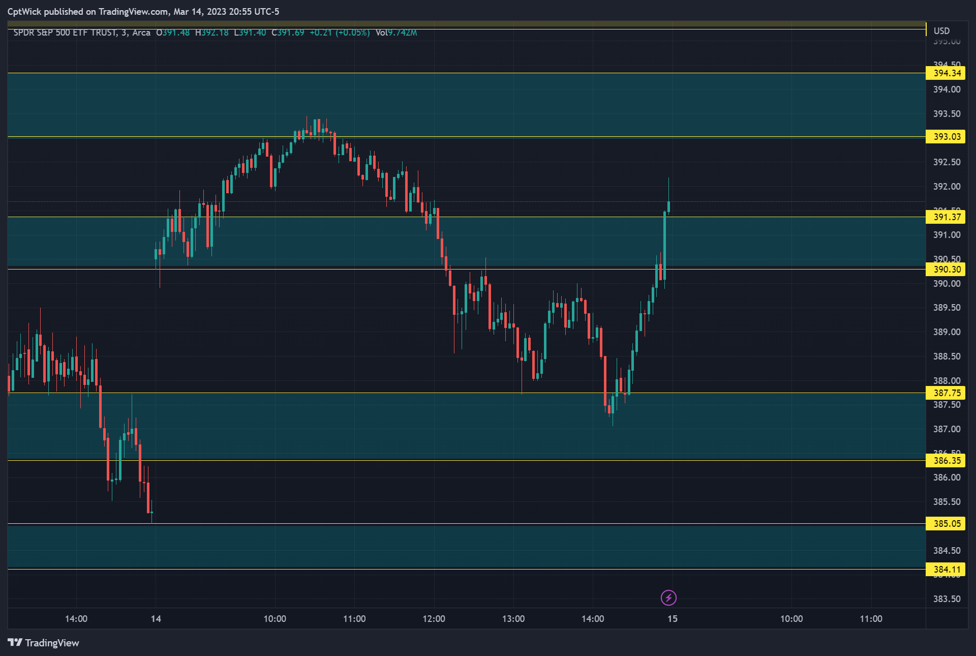 Price respected our levels from last nights plan. We gapped up right into our major supply zone and pushed up above but the bulls could not push is above our supply zone at 393-394.34 (negative vanna) and we then sold down past the open but found support at demand/negative vanna at 387.75. This is how we bring conviction to these zones.