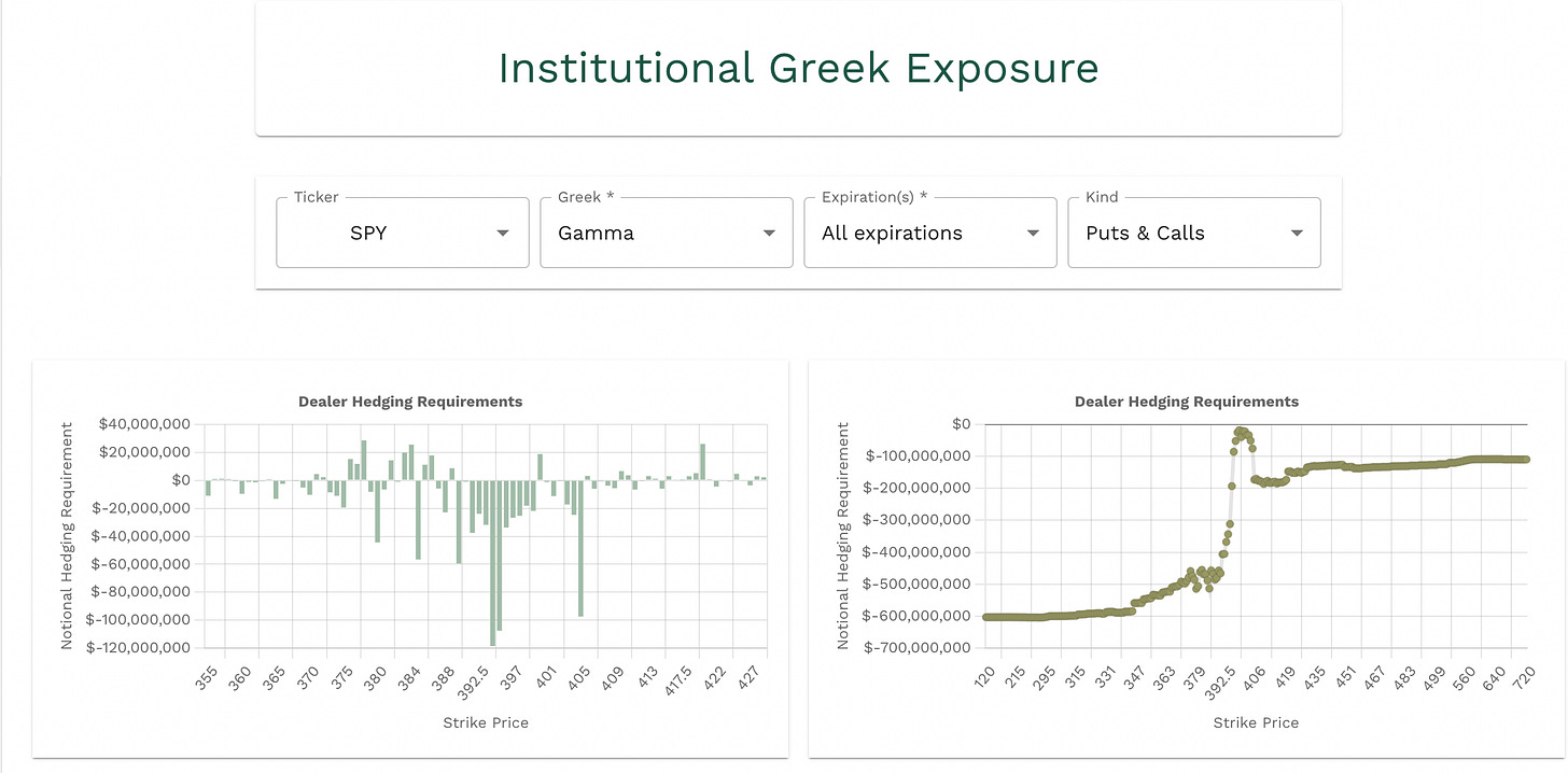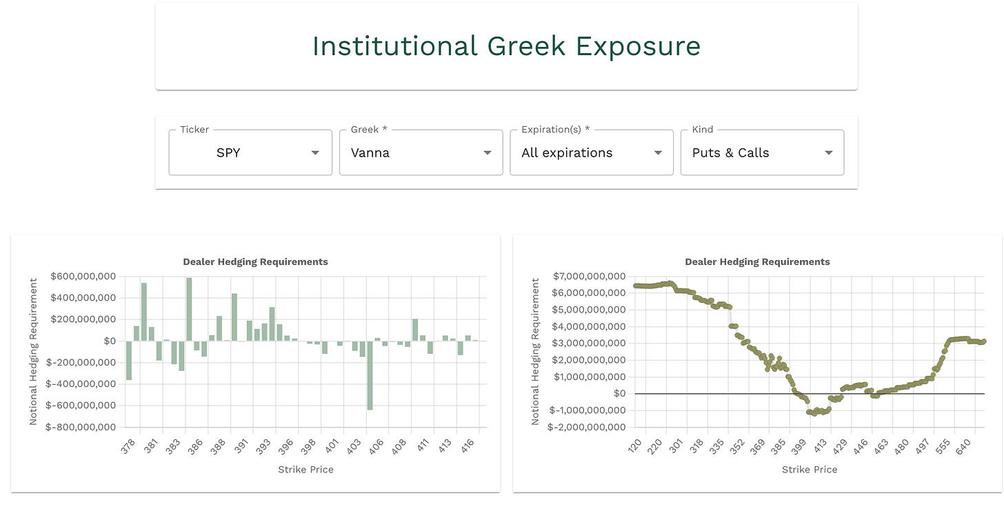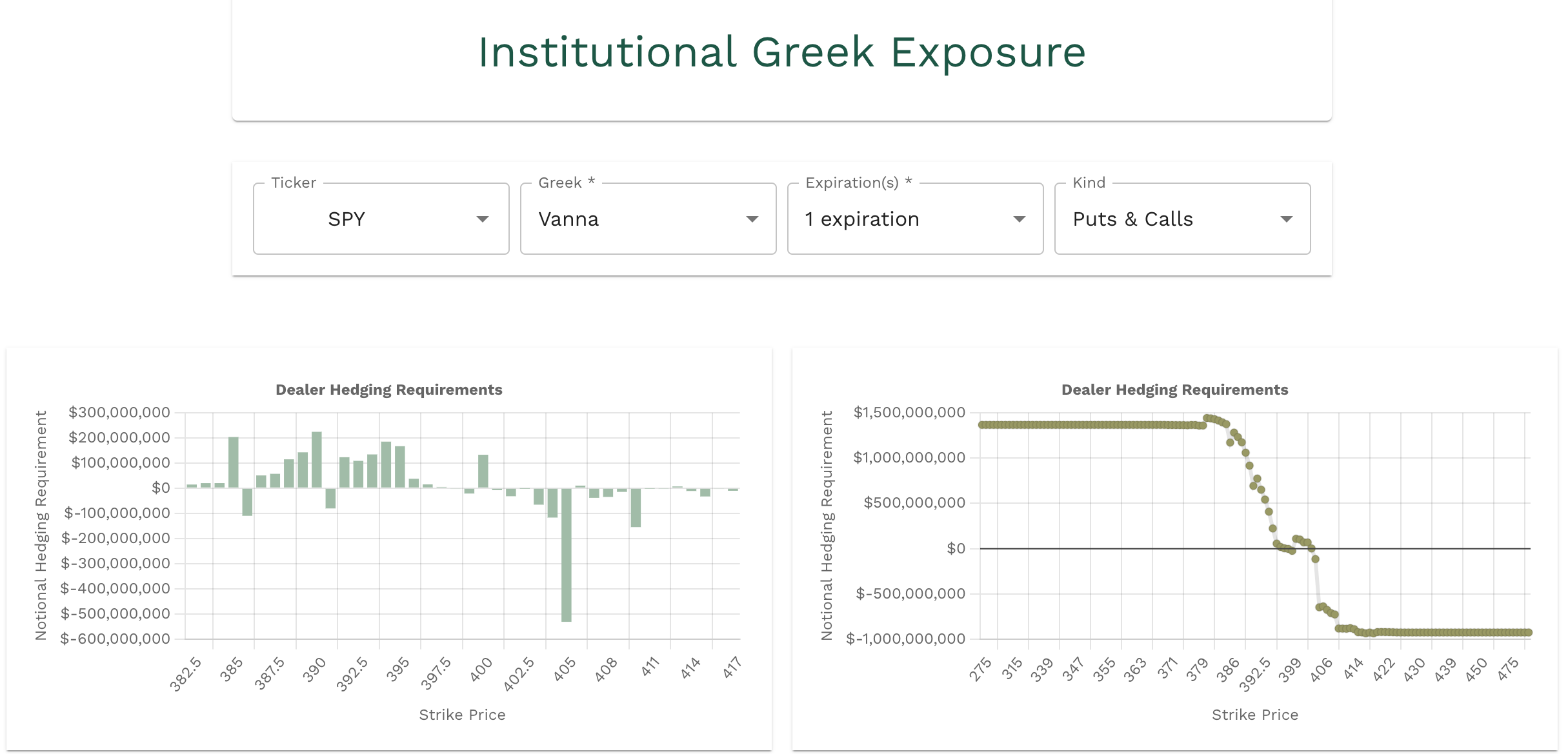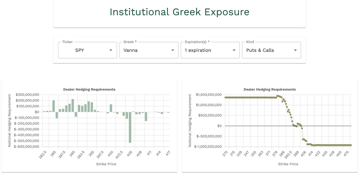 The vanna for the 3/3 expiration, we have positive at 400 and positive down to 392 and a negative cluster from 402-405 and at 391.