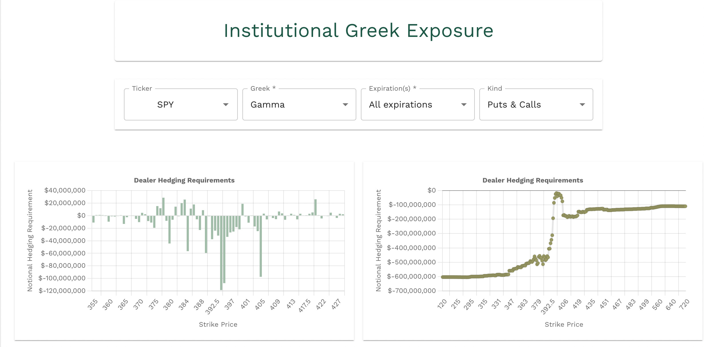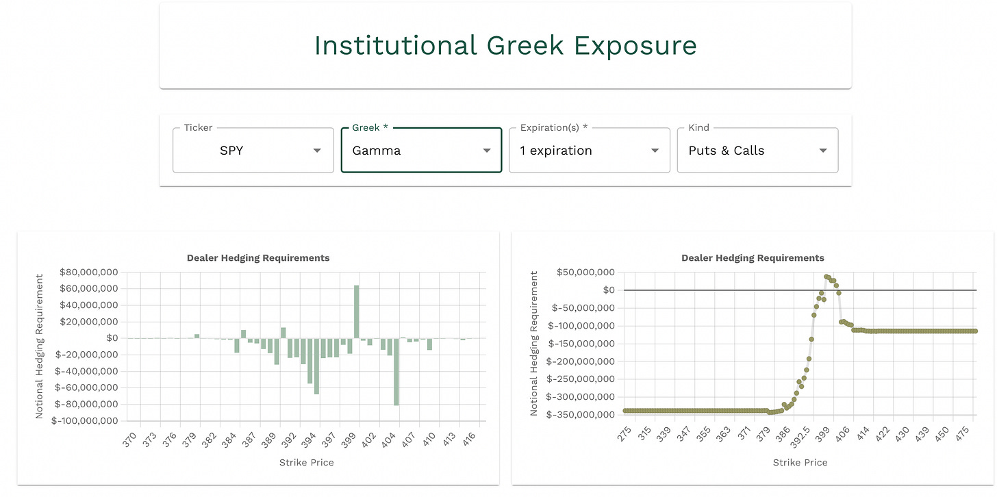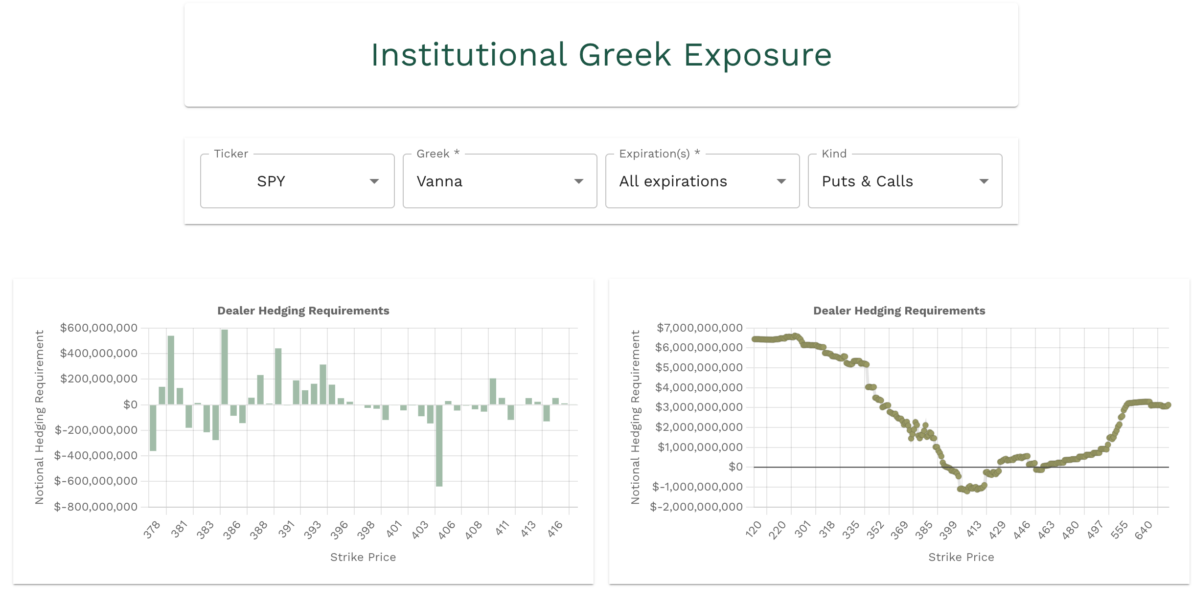 The vanna for the 3/3 expiration, we have positive at 400 and positive down to 392 and a negative cluster from 402-405 and at 391.