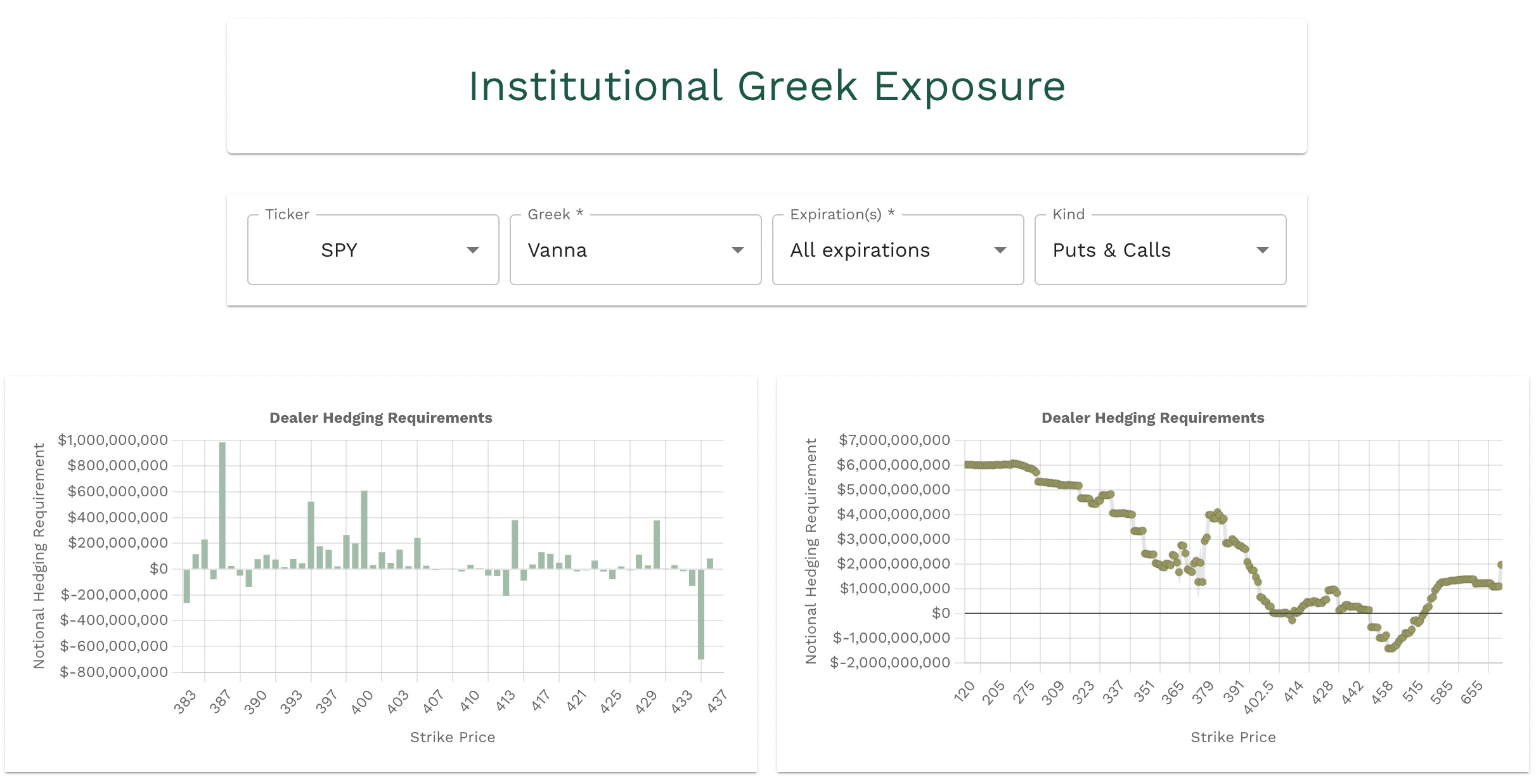 Vanna is negative at 409, 412, 413, 415, with a bigger cluster of positive vanna below spot price down to 389-388.