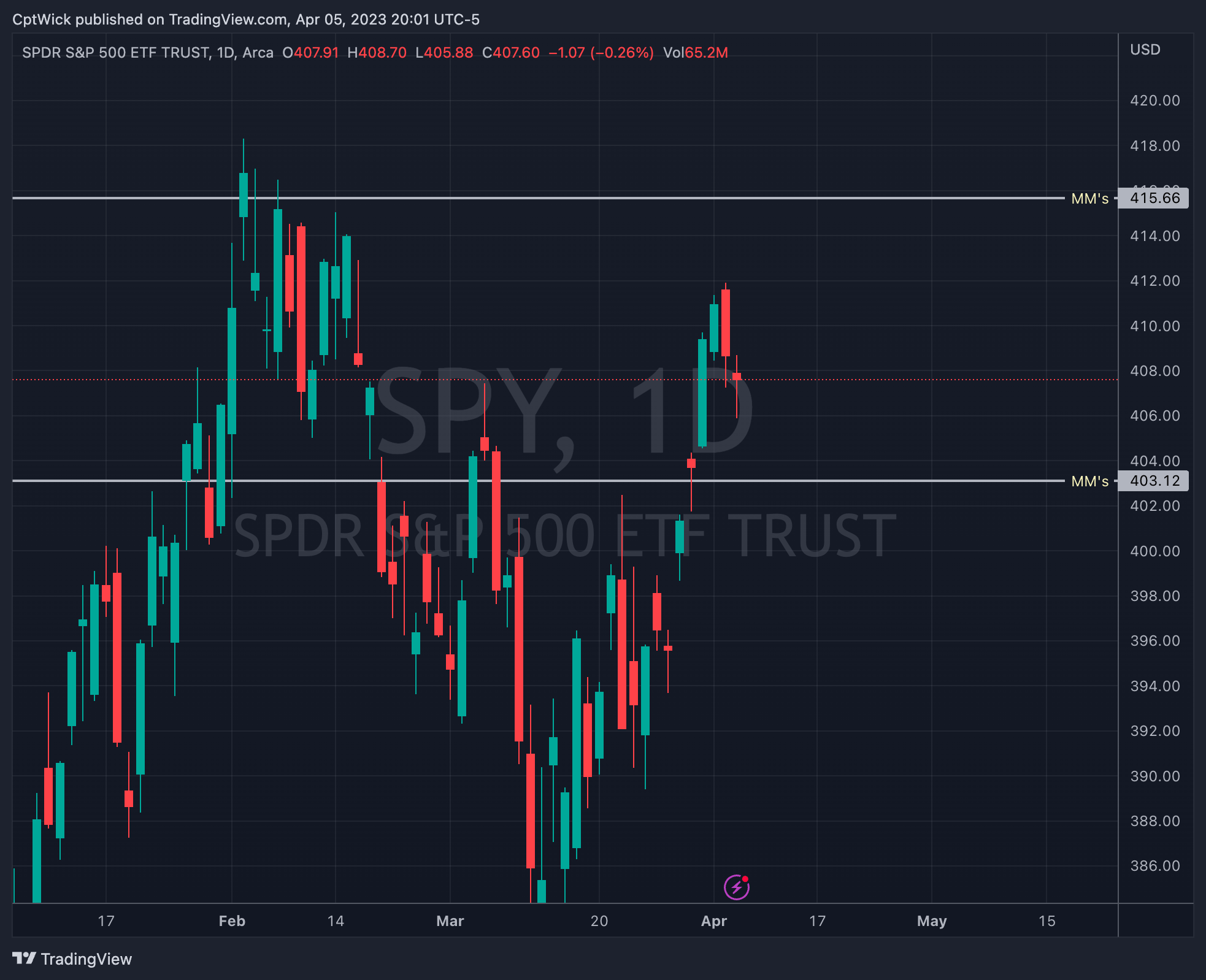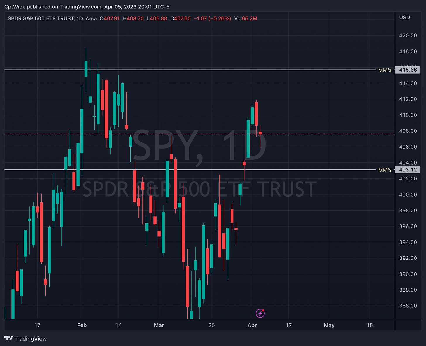 Remember, the MMs have a weekly expected move to either 415.66 or 403.12. I would think that the close under 407.66 and being closer to the MMs downside target, it might be likely for us to see 403. It just seems like the safer bet.