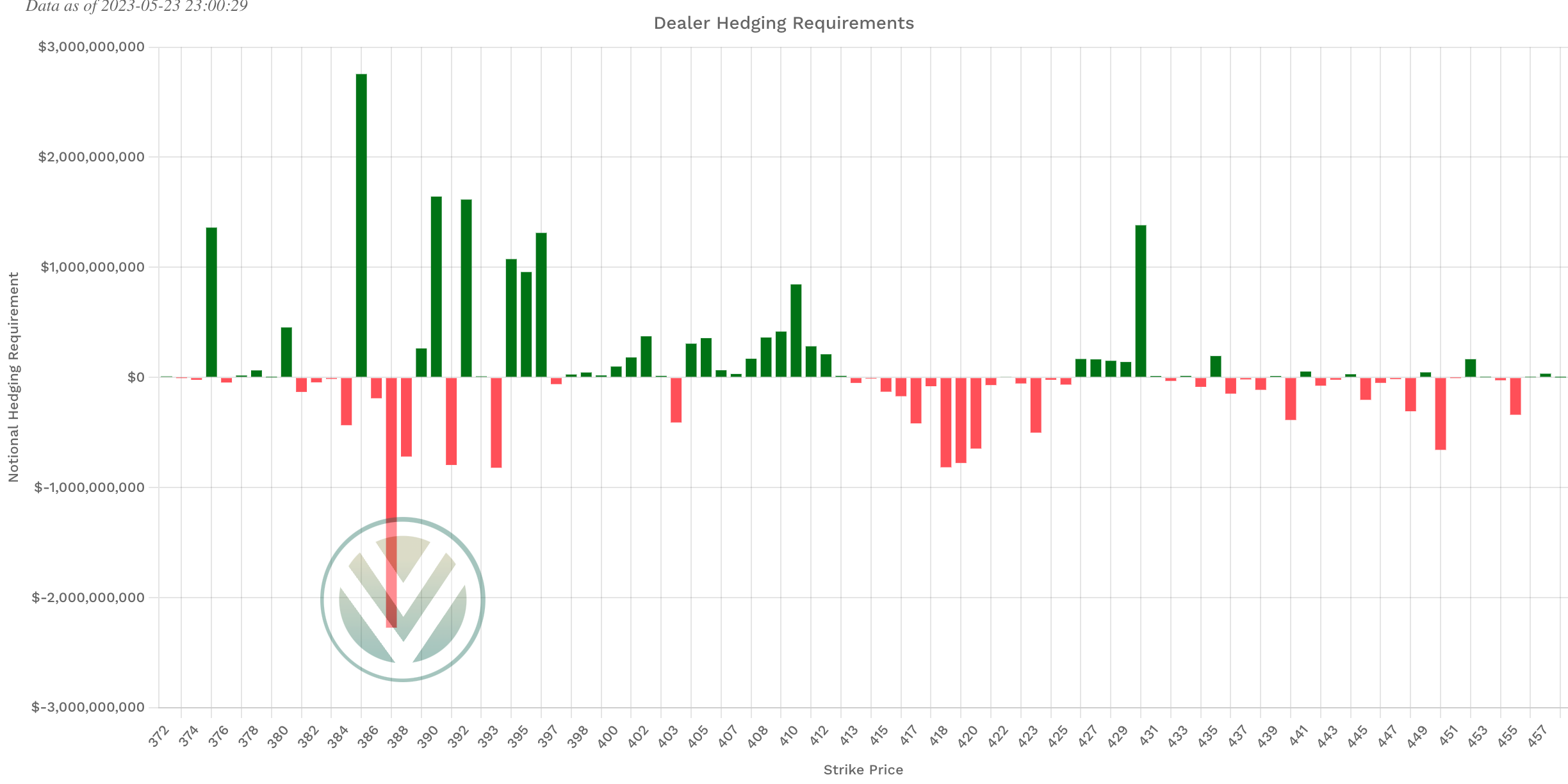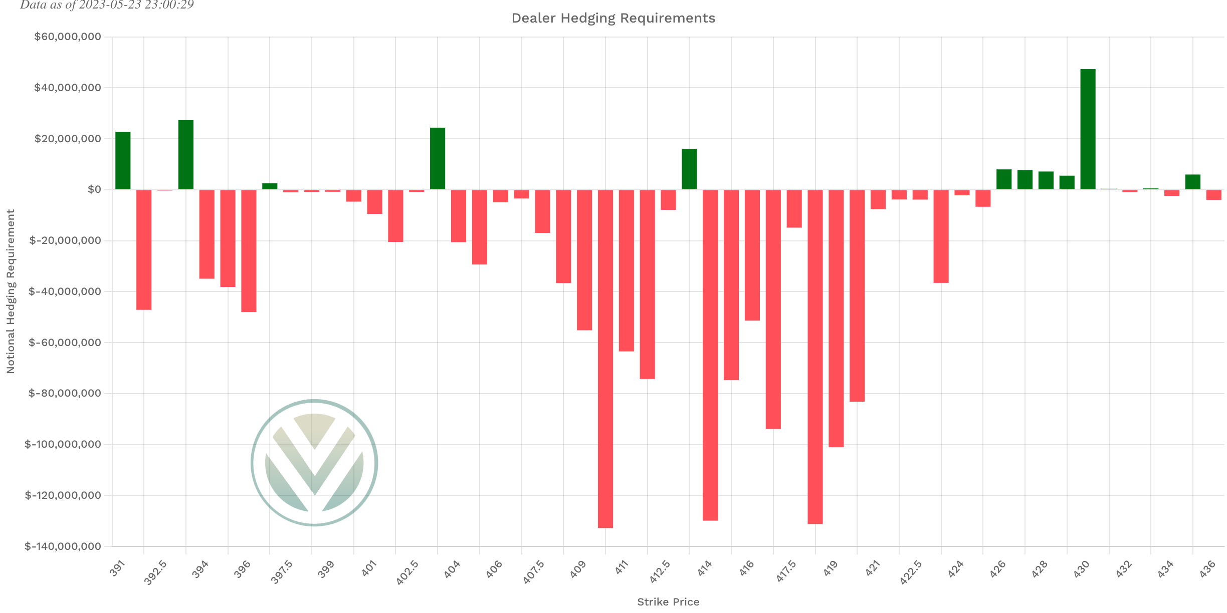 If you go and read 5/22’s trade plan you will see that we didn’t have any negative Vanna at this cluster from 413-425. This might be signaling a move down. Im not going to say it is but if price falls under that 413 level, this negative Vanna should help push price down.
