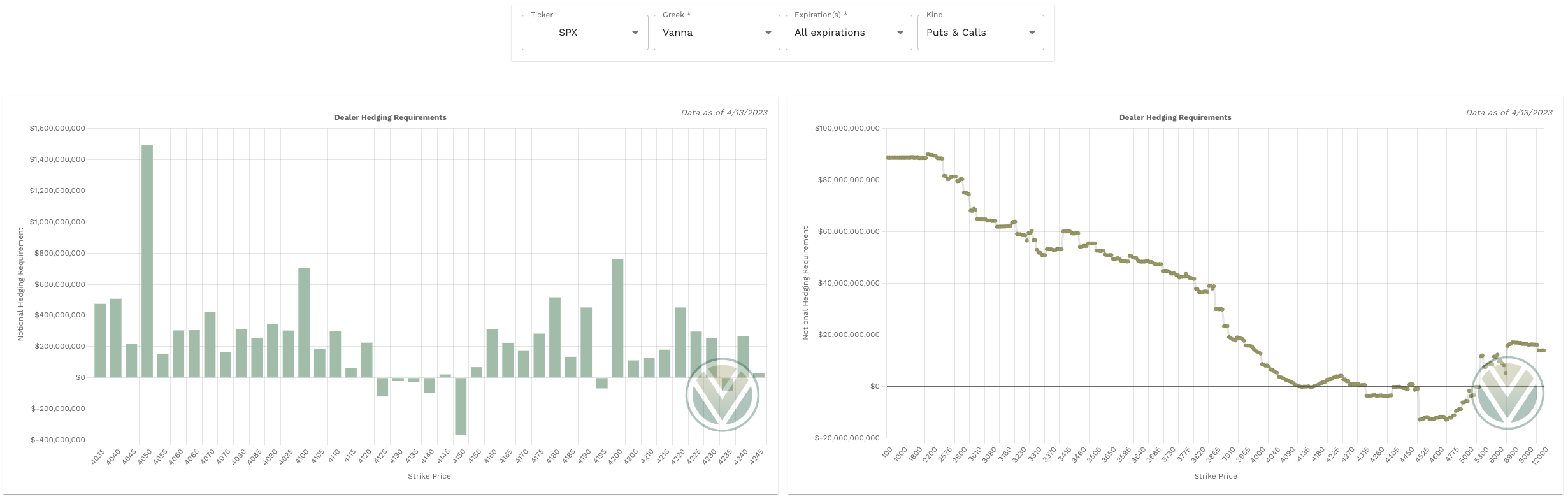 For a better understanding of the various greeks below I would suggest you visit the Volland YouTube Page. Volland provides unique data showing where dealers are positioned providing in my opinion a higher degree of conviction to where price may move to.