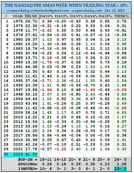 His other scan of data shows that the 5 days before Christmas when it has had a year where it has gained more than 10% then this week ends 24 times up and 5 times down.