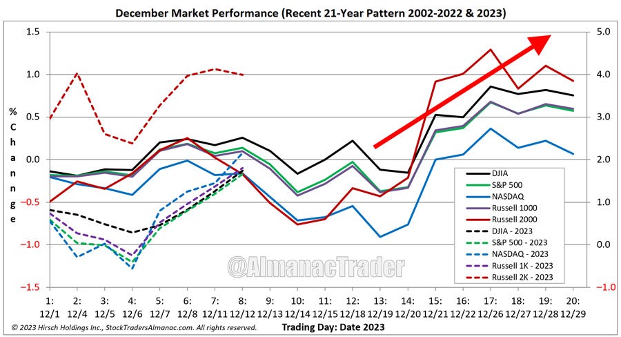 So you can see the conflict we are faced this week and when you add to that the typical seasonality of the rest of December is quite bullish…