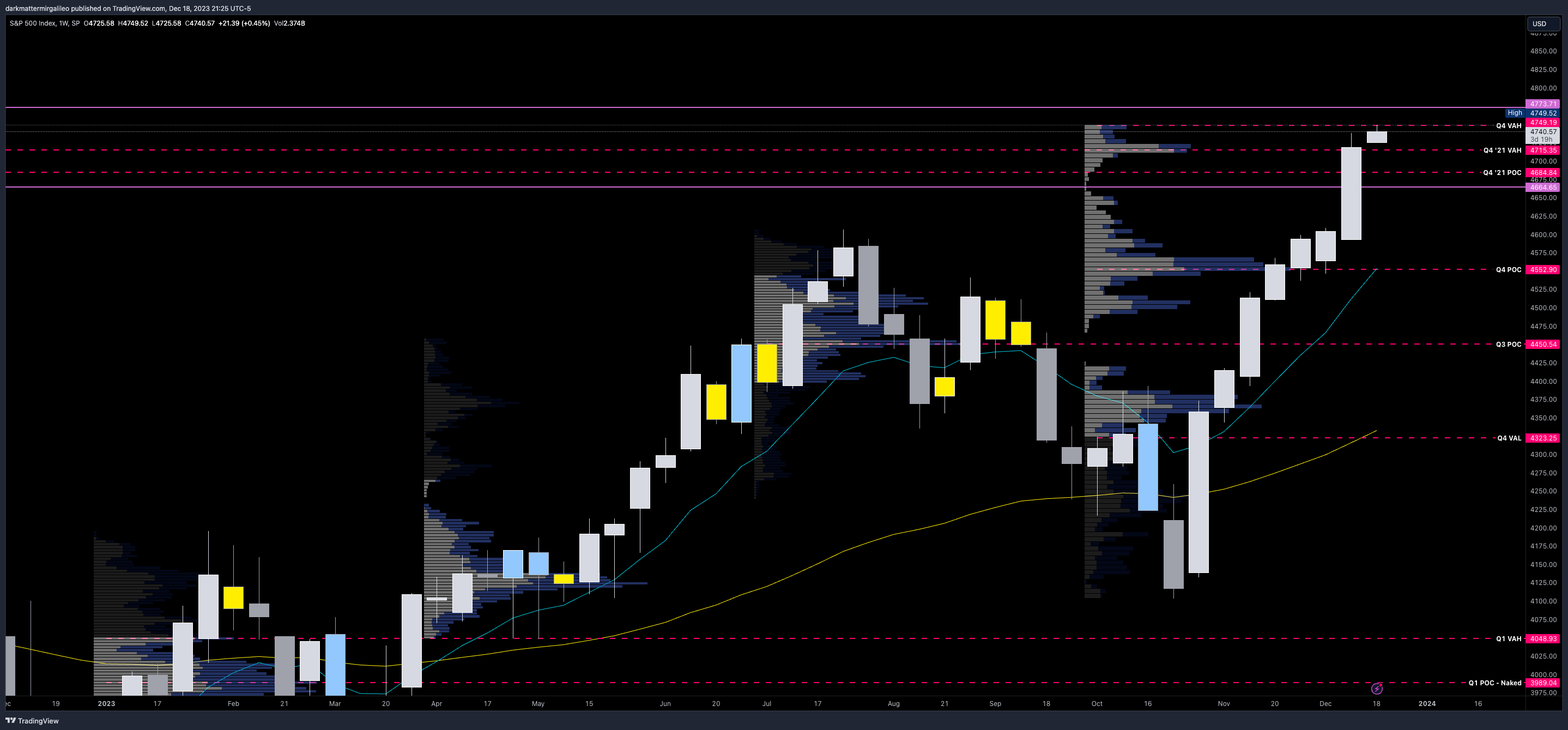 From a quarterly volume profile on the weekly chart some key levels are seen.