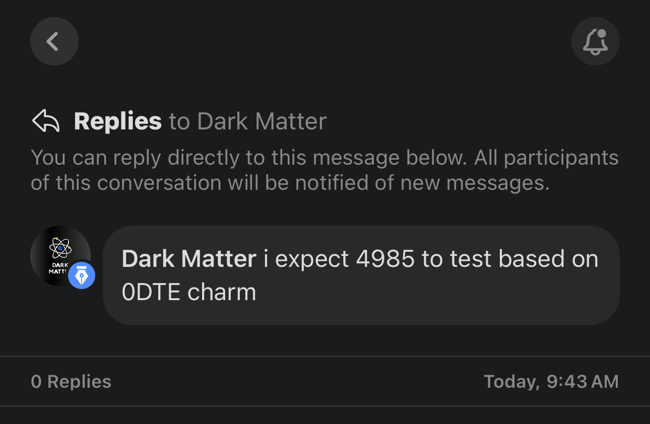 Additionally, in the morning in our chat room we provided an update that 4985 would trade and that ended up being 2pts shy of the low of the day.