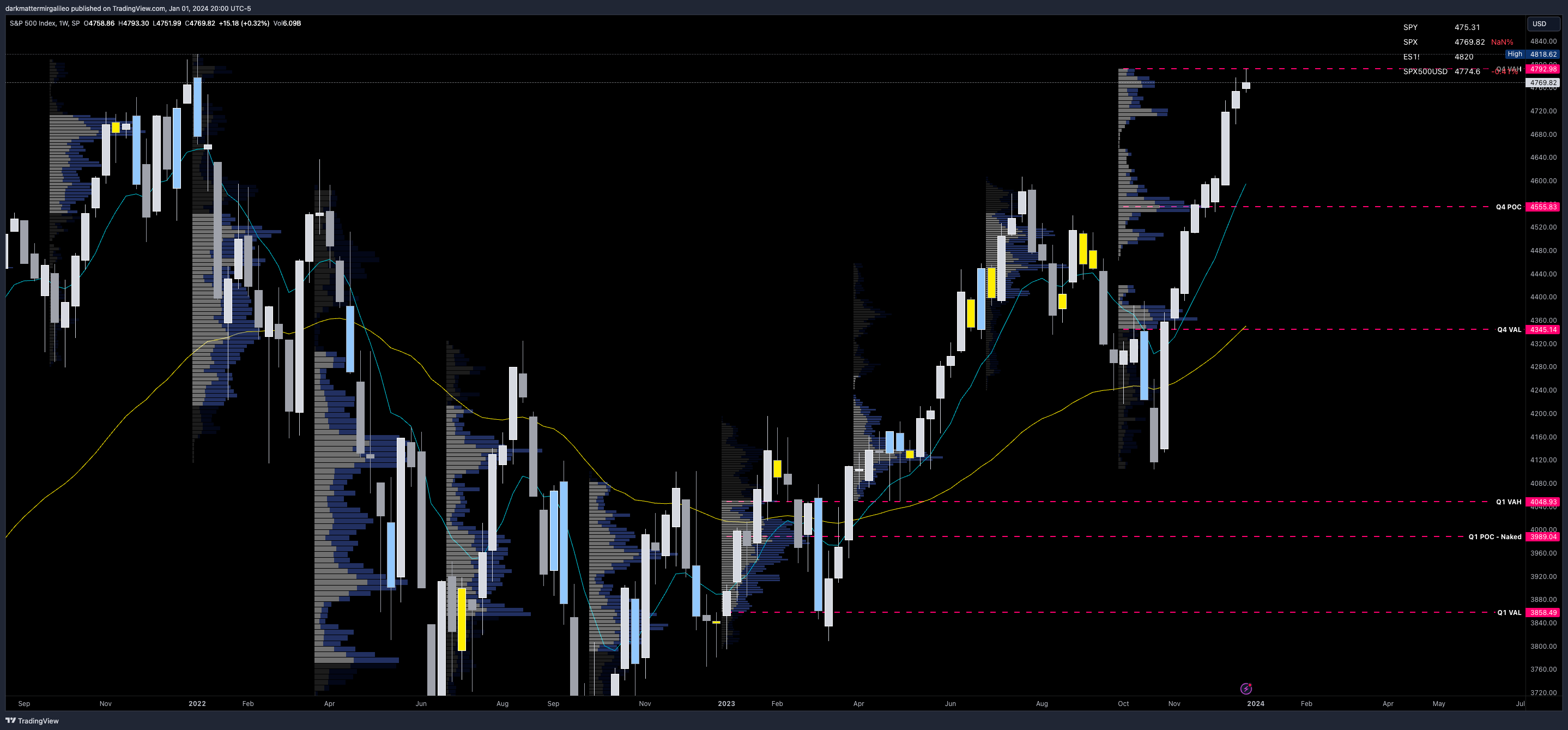 From a quarterly volume profile on the weekly chart some key levels are seen.