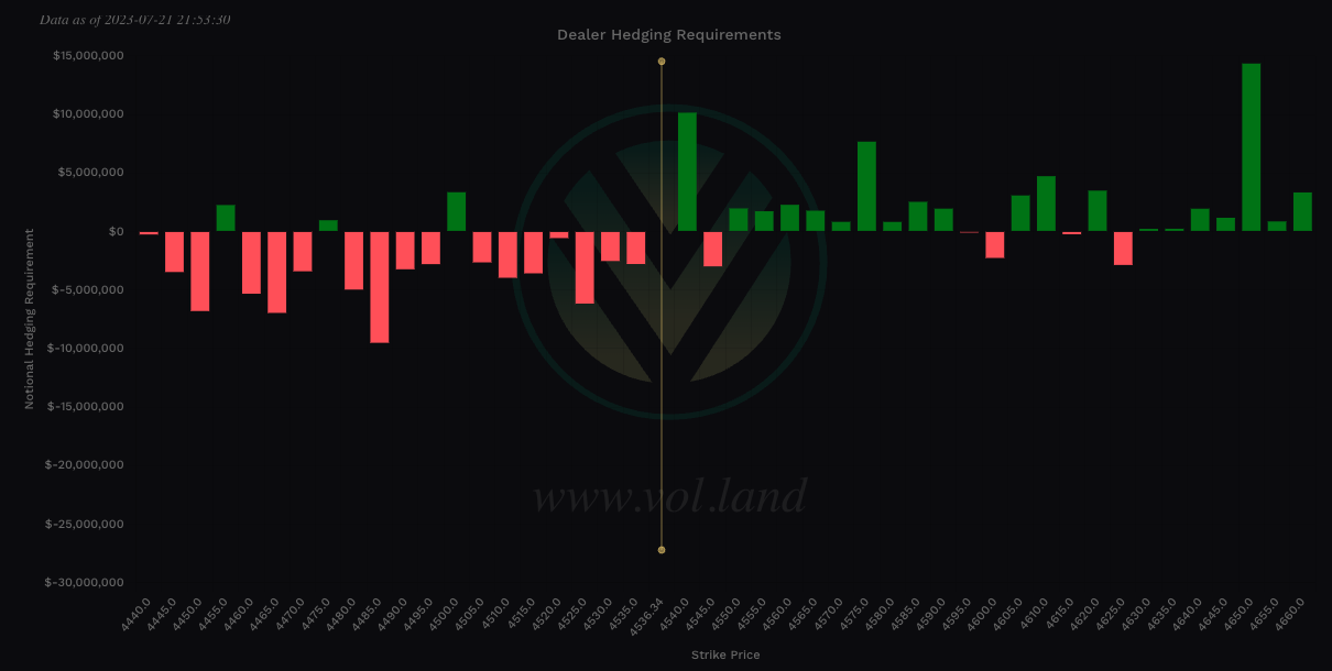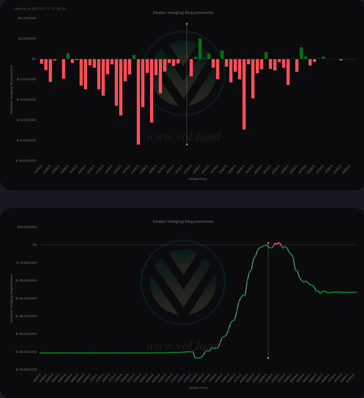 For a better understanding of the various greeks below I would suggest you visit the Volland YouTube Page. Volland provides unique data showing where dealers are positioned providing in my opinion a higher degree of conviction to where price may move to.