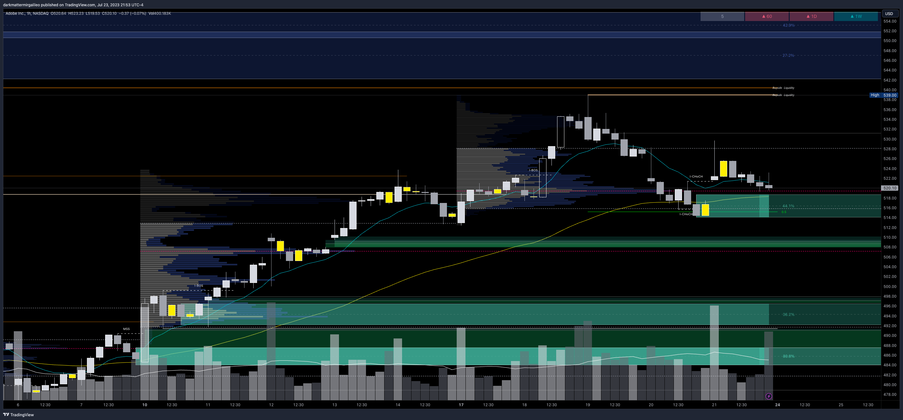 Friday’s action was was quite interesting where we gaped up, but immediately sold off towards the lows of the day at 4535. Basically price ping ponged between 4555 and 4535 the entire day. Friday was also OPEX, which if you go back to each monthly OPEX or quarterly OPEX I mention it is one of the more difficult and frustrating days especially if you are waiting for levels to break or for continuation. It often traps traders to the up or down side with no follow through. I use these days as opportunities to start positions and I did this with ADBE - by starting another short position on it after taking profits shorting it Thursday.