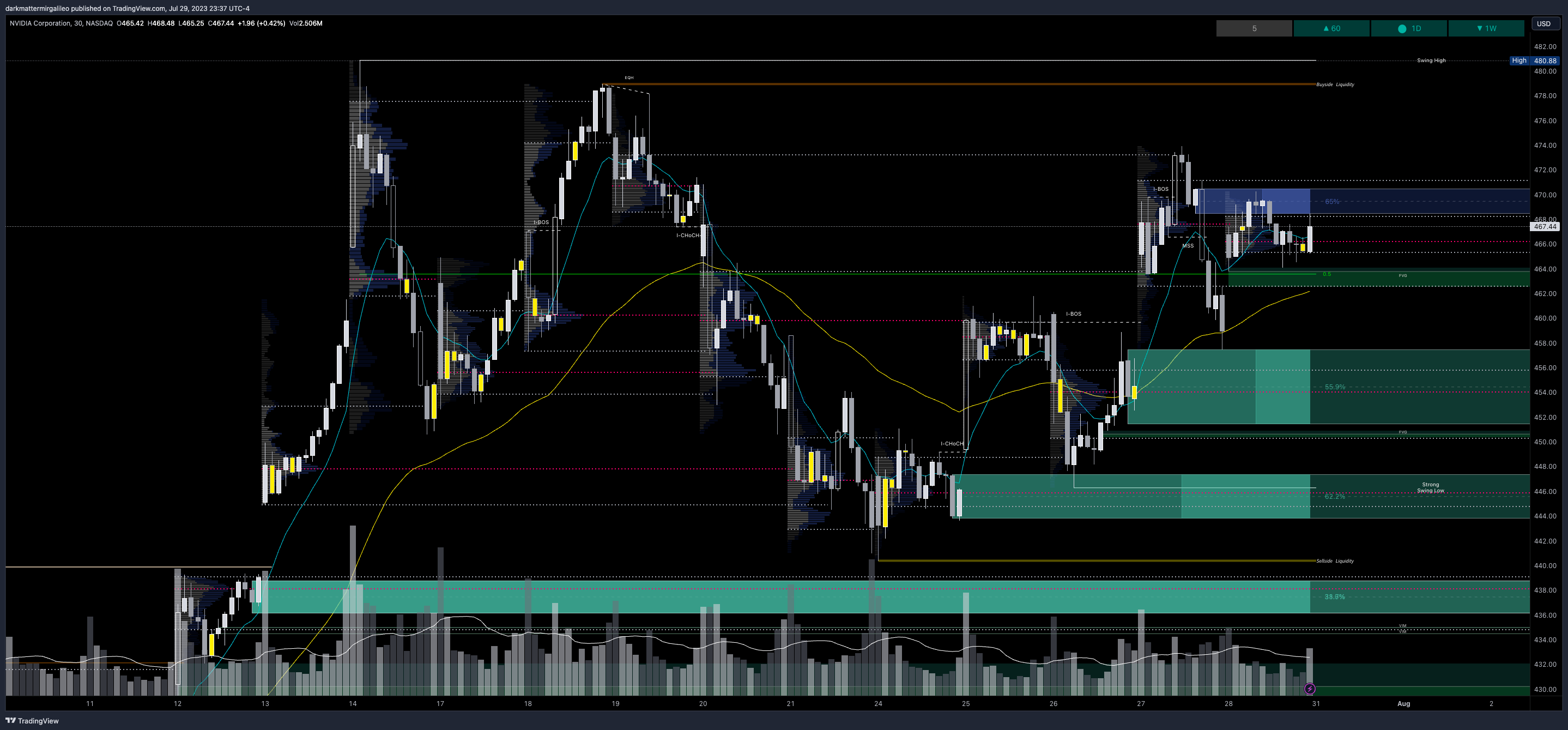 These are smart money concepts and some areas I am looking to see how price reacts. I will give higher credence to OB’s whereas FVG’s could be areas of basing/consolidation if they break. I use Sonarlab’s indicator on Tradingview to plot these.