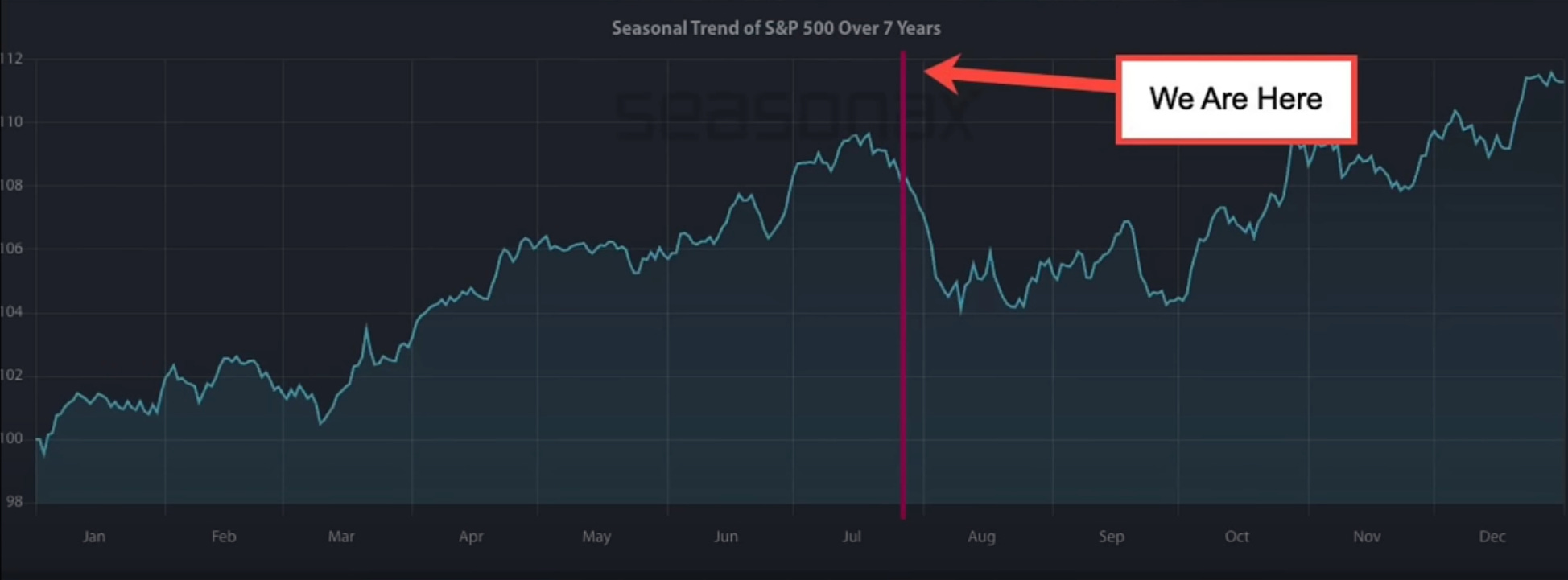 We then have a seasonality view of SPX from the past 7 years and it shows a telling story of a down trend over the next 2 months.