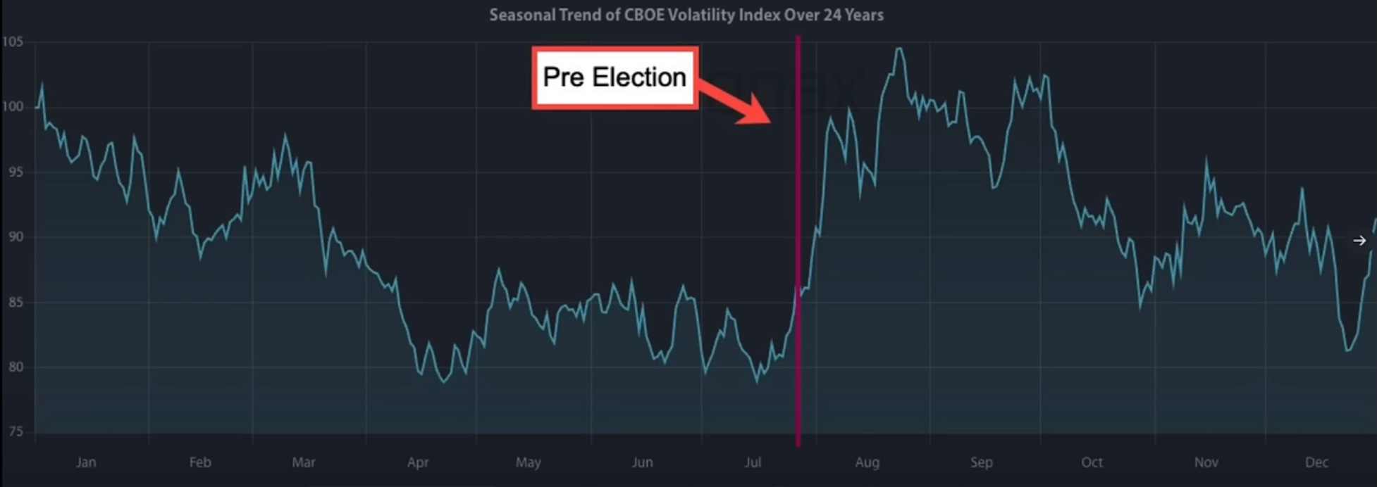 In pre-election years we see a quick spike in August before it cools and ultimately triggers a new high in September with one additional push in October before it fades…