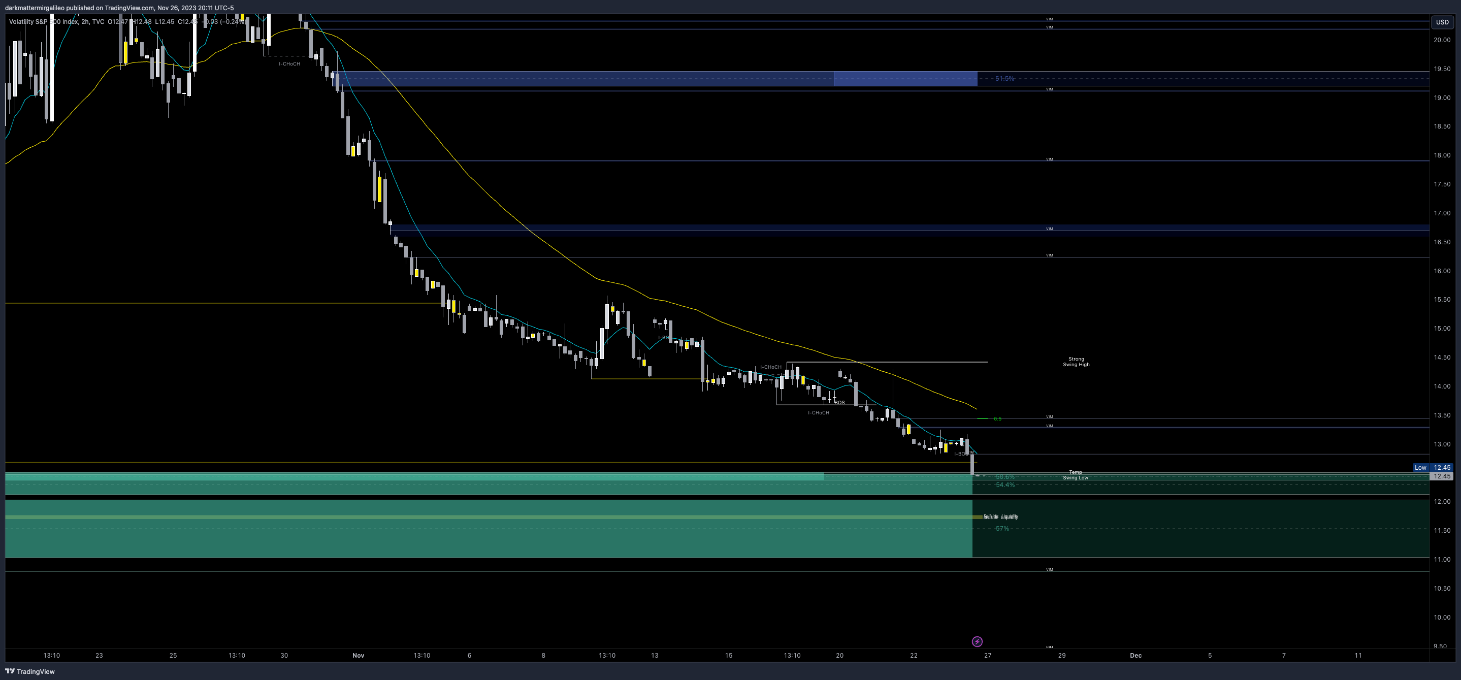 Let’s zoom in now and on the 2hr chart we see some areas of support where the VIX could bounce from. So keep an eye on this zone in the VIX and let it guide you, your bias, and trades over the next few weeks.